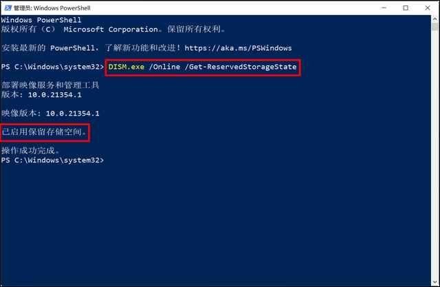 如果我们后悔了,想恢复这个系统保留空间,那我们还可以输入以下命令,就可以一键启用系统保留空间了,然后重启系统就恢复成功了。