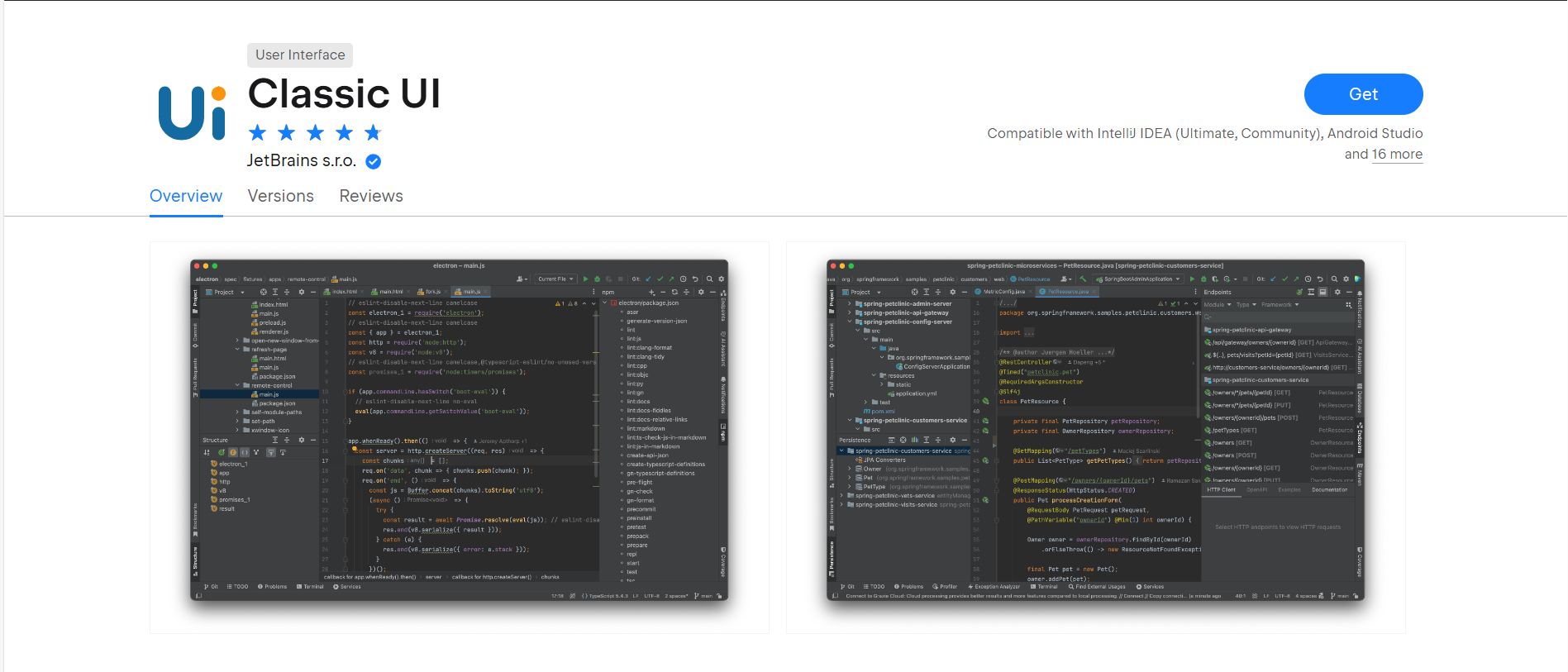 在 JetBrains 2024.2 中,新 UI 现在成为所有用户的默认选项, 新 UI 简洁而现代,提供更大、更易用的控件、一致的调色盘、明亮清晰的图标、增强的对比度和更好的强调色。升级到2024.2之后经典 UI 则作为插件提供,只需要装上Classic UI 插件重新启动idea就可以使用之前的UI了。